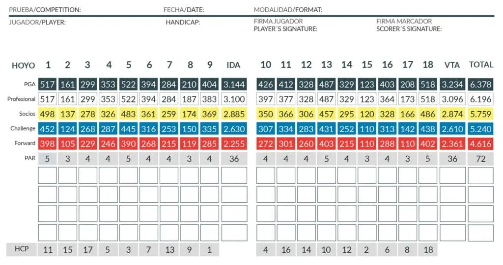 - · De 3 a 5 tees de salida por hoyo.